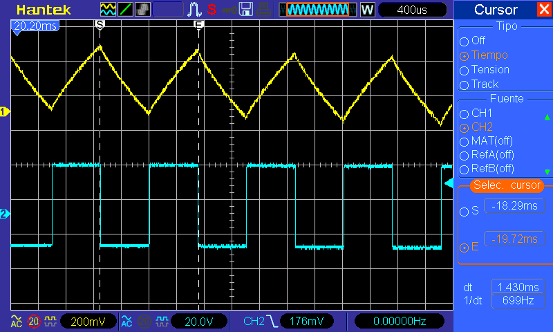 Onda cuadrada desde la salida del arduino, y la onda después del filtro.