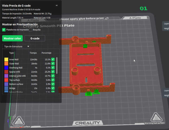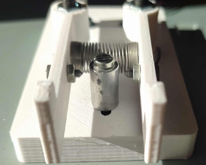 Esta realizado con impresión 3D en PLA y algunas tuercas y tornillos.